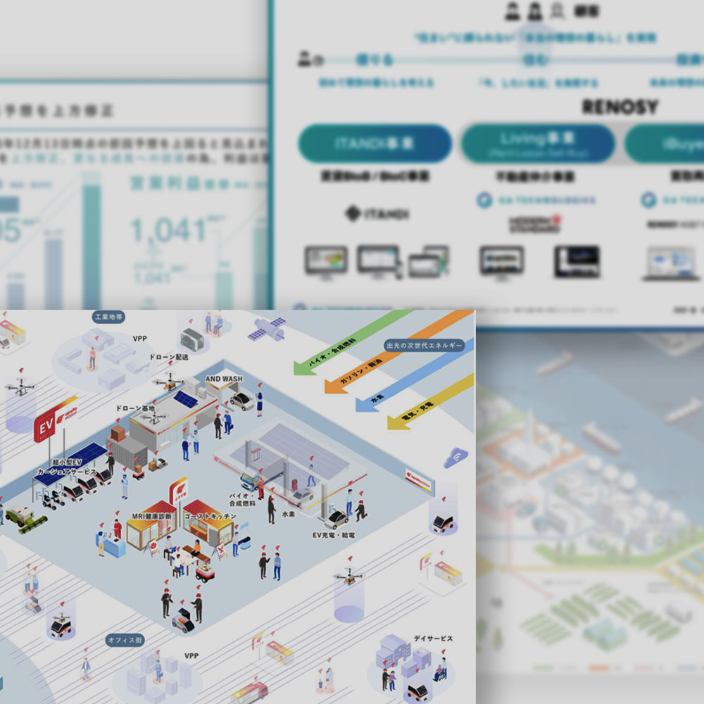 複雑な情報をわかりやすく整理し、視覚化することで、意図をスムーズに伝えます。図解や構造化されたビジュアルで情報の受け手が直感的に理解しやすくなるため、意見交換が活発に行われ、価値あるフィードバックも得やすくなります。
